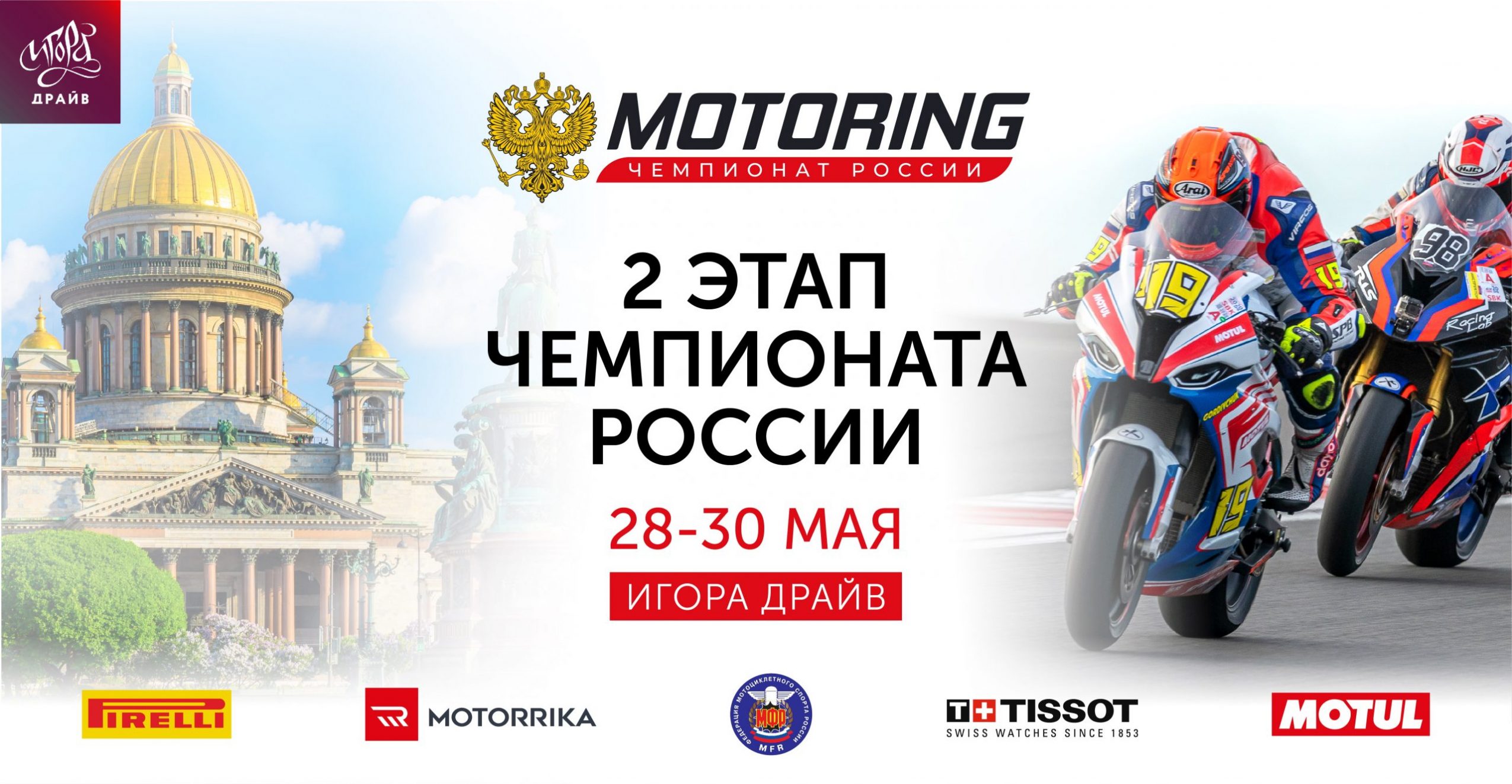 Очередной этап на Игоре? Как бы не так! Чемпионат Санкт-Петербурга и наш самый масштабный уикенд на лучшем, новейшем мотогоночном треке в России пройдет на мировом уровне с онлайн-трансляцией, которую для вас будет комментировать российский голос MotoGP Евгений Масленков, для болельщиков вход на трибуны будет бесплатны…