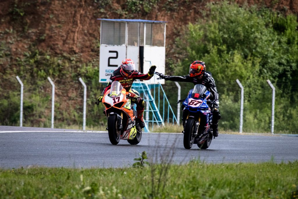 Исход гонки Supersport не мог предположить никто. Главный претендент на победу, чемпион класса в сезоне 2022, Дмитрий Седин, не проехал и половины гонки – досадный сход из-за технических проблем. Похожая участь постигла и его ближайшего преследователя, Алексея Иванова, сошедшего с дистанции вслед за пилотом ЦСКА-VL65….