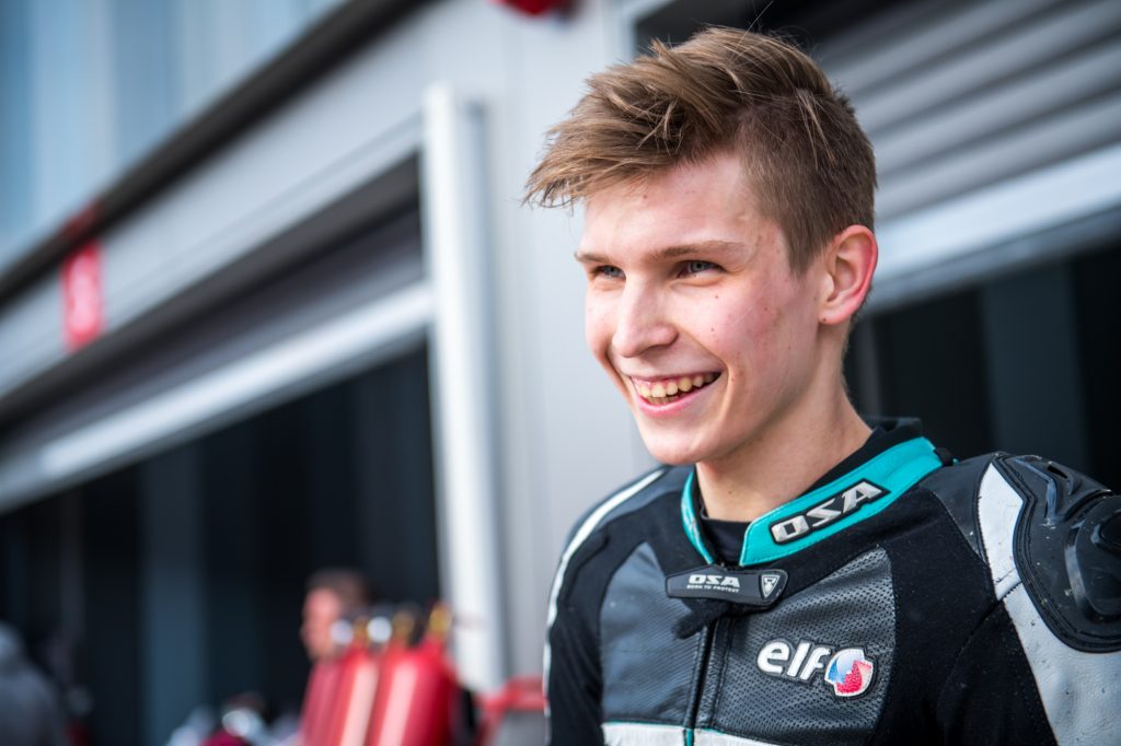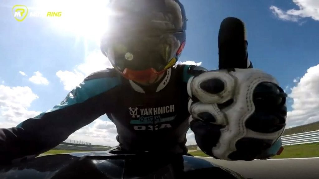 – Перед гонкой я понимал, что придётся за Темой ехать быстрее, чем на тренировках и эти 1.5 секунды будут достаточно сложными! После первого круга я смог подобрать нужный темп, но допустил ошибку: ехал очень узко и с большой скоростью,к которой ни я, ни мотоцикл не были готовы. Во время открытия газа я перегрузи…