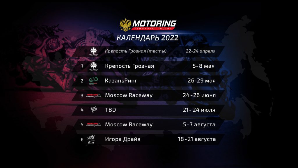 В сезоне 2022 гонки пяти классов пройдут в статусе Чемпионата России: Superbike, Supersport, Superstock 1000, Superstock 600 и Supersport 300 (минимото). Классы RoadCup 1000/600 и Superstock 1000 Evo/600 Evo в сезоне 2022 пройдут в статусе Межрегиональных соревнований. Соревнования включены в Единый календарный план…