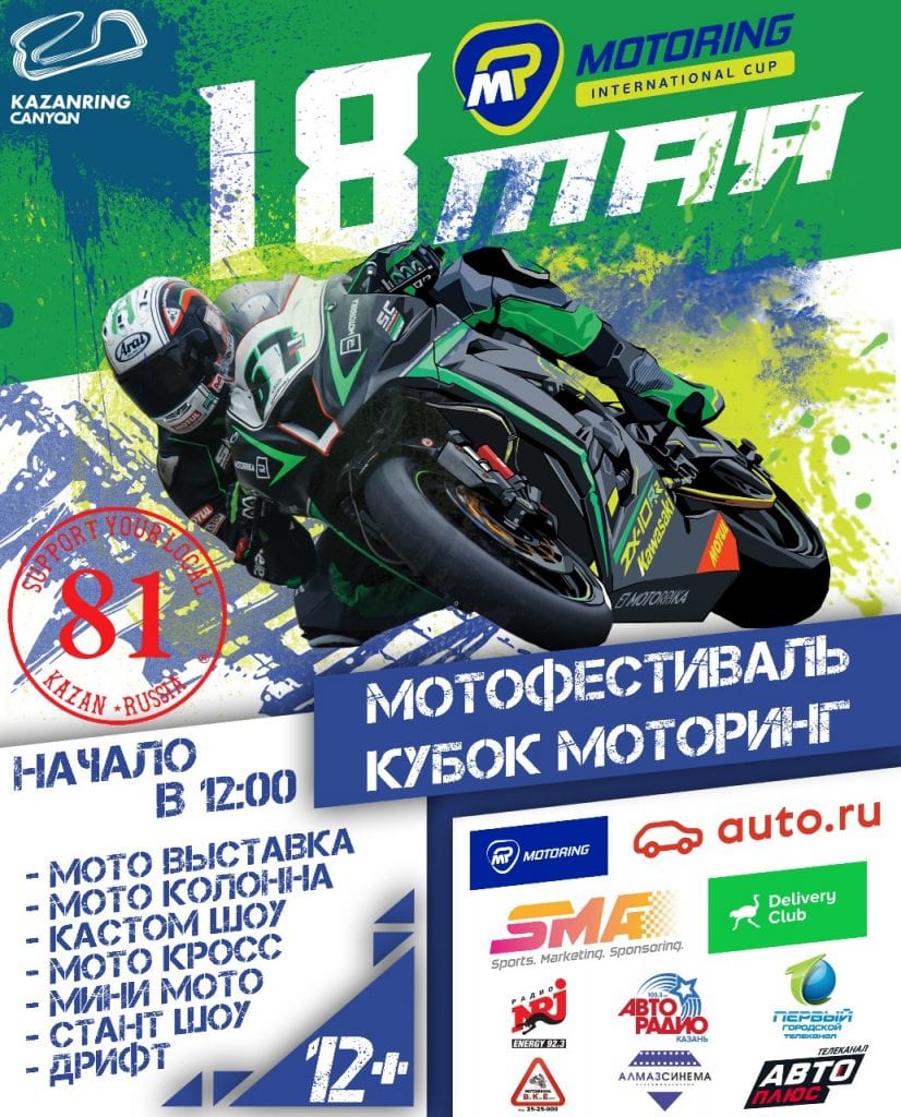 18 мая 2019 года в Казани на гоночном автодроме KazanRing пройдет ежегодный МотоФестиваль, который проводится в рамках Первого этапа Международного Кубка Моторинг и Официального Открытия Мотосезона–2019. Крупнейший дилер Ducati, Kawasaki и Yamaha в России, группа компаний «MOTORRIKA» организовала Чемпионат по шоссейно-…