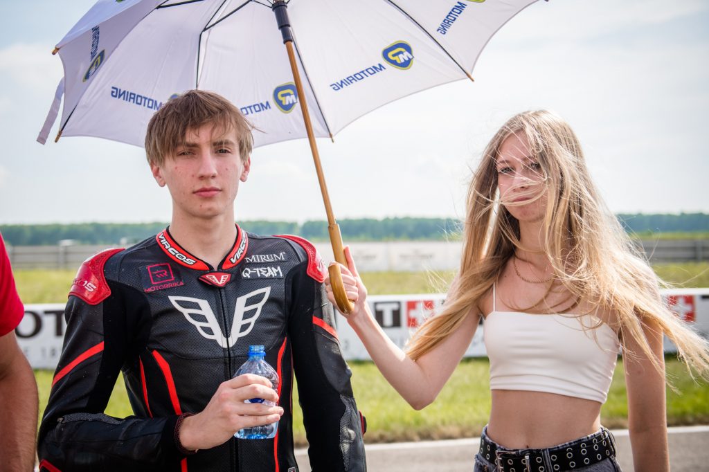 Поскольку было очень жарко, я не хотел ехать вторым: можно было легко перегреть мотоцикл, ему не хватало бы обдува. Ехал первым, выбрал быстрый темп, но не выкладывался на всю, понимая, что нужно оставить силы на финал. Вова очень круто меня обогнал в середине гонки, я проехал за ним круг, температура очень возросла и я понял, что это не вариант и обогнал его. Ближе к концу гонки у Вовы начались неполадки с мотиком, финиш гонки вышел для меня очень легким.