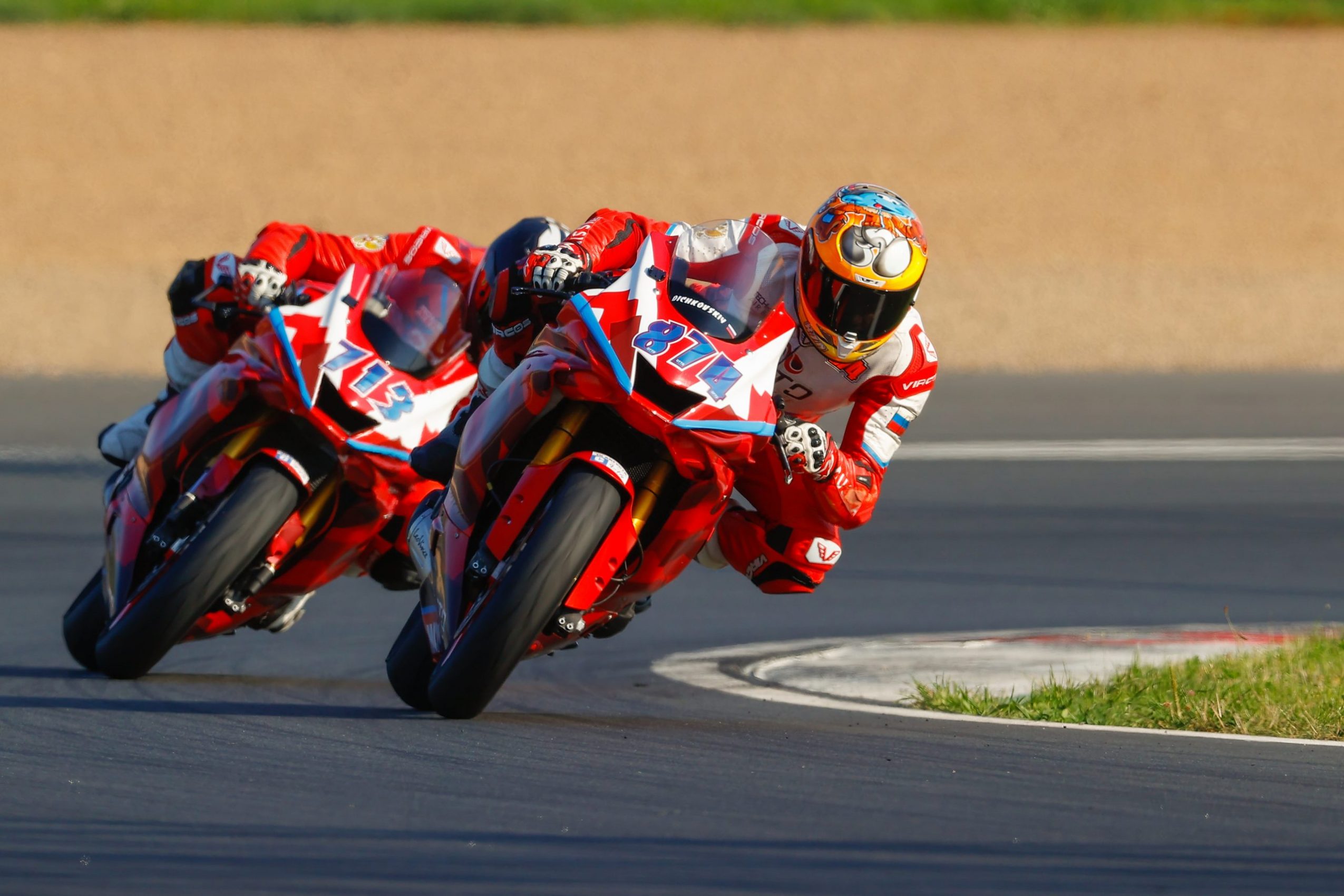 Первая гонка заключительного этапа Чемпионата России выдалась невероятно нервной: в обоих классах, Superbike и SuperStock 1000, ставки были высоки. Первое драматичное событие разыгралось в середине заезда: Михаил Шумилин, претендовавший на первое место в своем классе и уверенно удерживавший четвертую позицию в гонке, вылетел в гравий, дав своему сопернику, Фоме Калинину, шанс заполучить чемпионский титул. Тем не менее, Михаил сумел вернуться на трек и продолжить заезд, потеряв много времени. Неожиданно за несколько кругов до финиша с трассы вылетел и Фома Калинин: судя по всему, пилот при падении повредил ногу, так как самостоятельно подняться у него не получилось. Тем не менее, когда Фоме на помощь пришли маршалы трассы, он настоял на том, чтобы те вернули его на мотоцикл и снова включился в гонку. Такого поворота никто не ожидал: борьба приняла совершенно новый оборот. Чтобы стать Чемпионом в классе SuperStock 1000, Фоме нужно было доехать гонку до самого финиша. В итоге пилот сумел завершить заезд на предпоследней позиции, за ним клетчатый флаг увидел Михаил Шумилин.