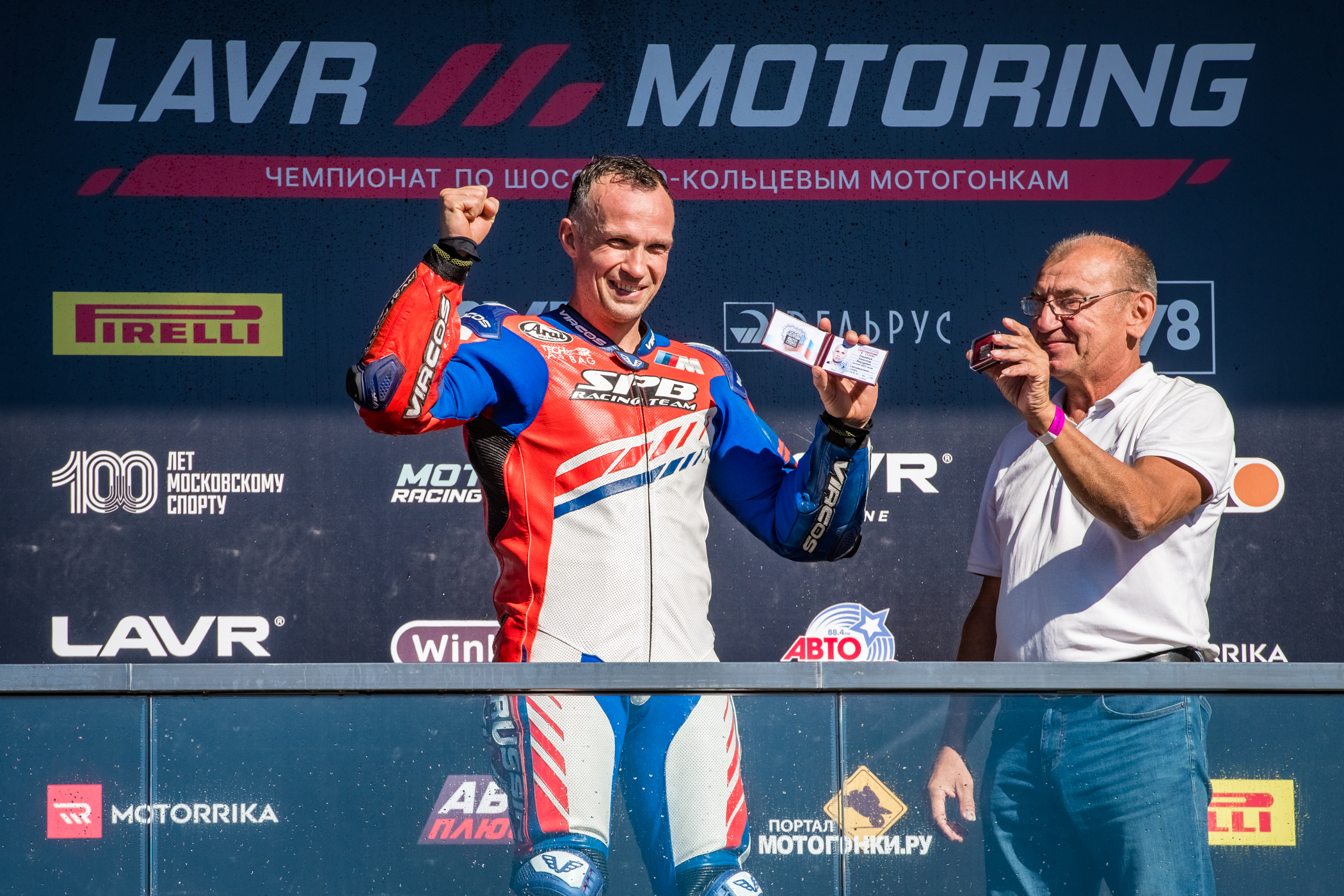 Пожалуй, главным событием гонки стала дуэль, развернувшаяся за спинами пилотов SPB Racing Team. Третью позицию удерживал Антон Еремин. В половине секунды от него ехал Артем Мараев (LAVR Motoring Racing) и выжидал момент для атаки. На 12 круге гонки Артем обошел соперника, однако пилот ЦСКА ProRace практически сразу же вернул позицию. Вскоре темп лидера стал снижаться: Макара опередил Владимир Леонов. Как выяснилось позже, у пилота слетел визор, так что ехать в прежнем режиме оказалось невозможно. Пилот SPB Racing Team терял темп, до конца заезда оставалась всего пара кругов, отрыв от ближайших преследователей все еще был внушительным, однако оставшегося времени могло не хватить для сохранения позиции. Антон и Артем приближались, и наконец, все трое уперлись в группу круговых. Вот тут и случился сюжетный поворот: первым группу прошел Артем Мараев, за ним – Антон Еремин, Макар сместился на четвертую позицию. При выходе на последний круг дистанции Антон на торможении сумел опередить Артема и предпринял попытку оторваться. Однако в третьем повороте пилот LAVRMotoring Racing технично обошел соперника, отвоевав право на вторую ступень пьедестала. Антон Еремин занял третье место по итогам заезда.