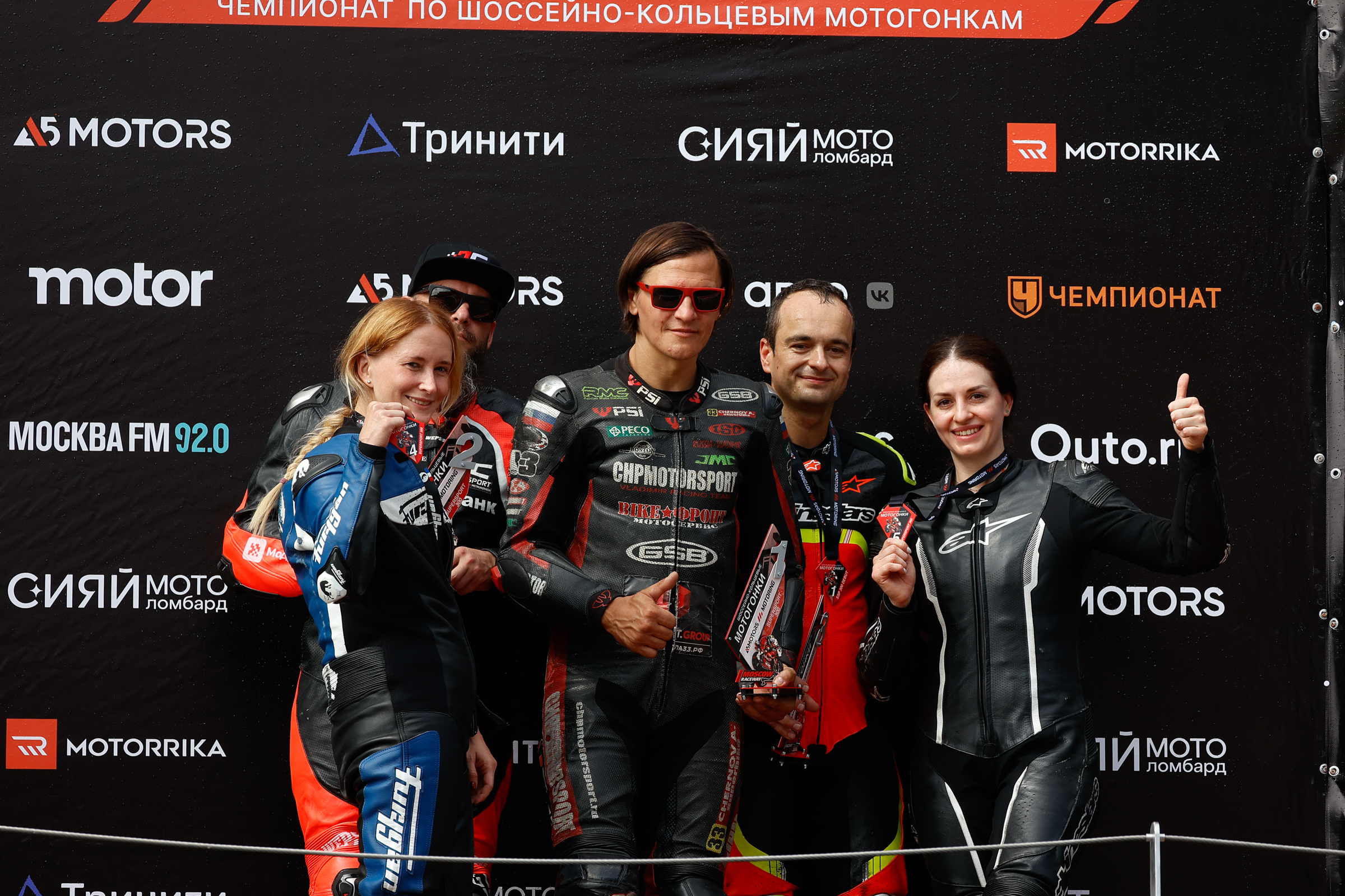 Титульная гонка чемпионата A5Motors Motoring прошла почти без сюрпризов: в четвертый раз подряд заезд выиграл Макар Юрченко (SPB Racing Team), вторую позицию весь заезд удерживал Артем Мараев (СКАРТИМ BMW Motorrad), старавшийся не отпускать соперника далеко. Третьим снова стал Антон Еремин (ЦСКА-ProRace). За круг до финиша заезд был остановлен красными флагами: на возвратной прямой «взорвался» мотор мотоцикла Олега Давыдова (VL65 Racing Team), разбрызгав горячее масло на трек и экипировку пилота. К последнему повороту байк загорелся – маршалы отреагировали мгновенно, заезд был остановлен решением Главного судьи. Результат был засчитан по полным 13 кругам дистанции.